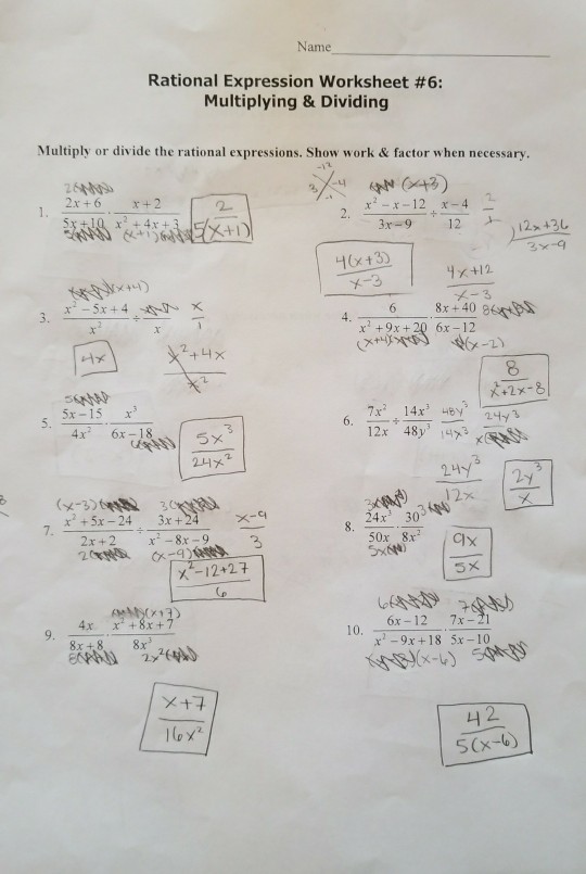 Multiplying Rational Expressions Worksheet Answers / Multiplying And Dividing Rational Expressions -